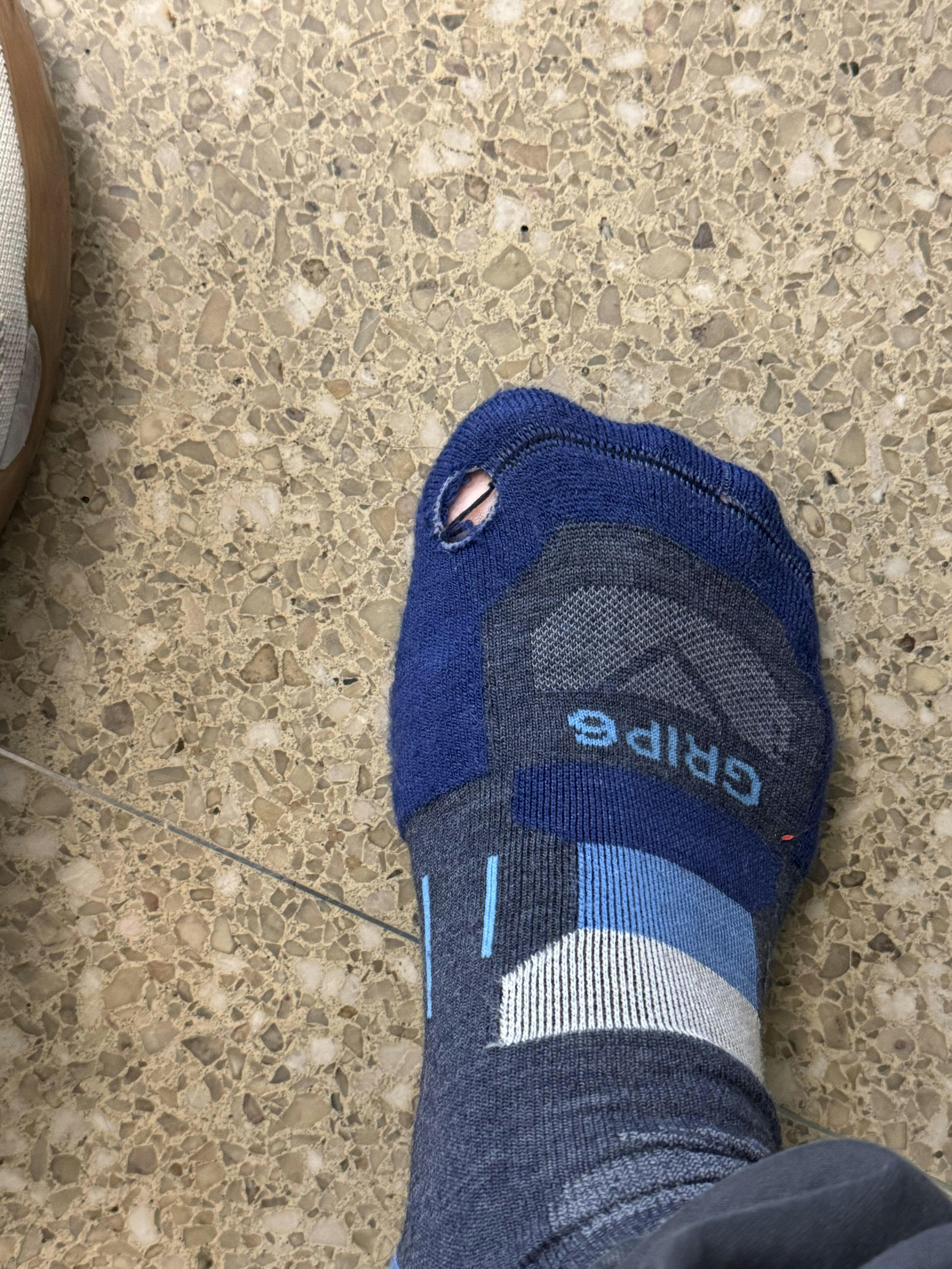 Within 1 hour I have a hole in my sock. I understand there are products that slip though QC processes. I had high hopes for your product. Aesthetically they are great. Comfort wise so far great. Durability is low. The entire toe seam is about to rip.