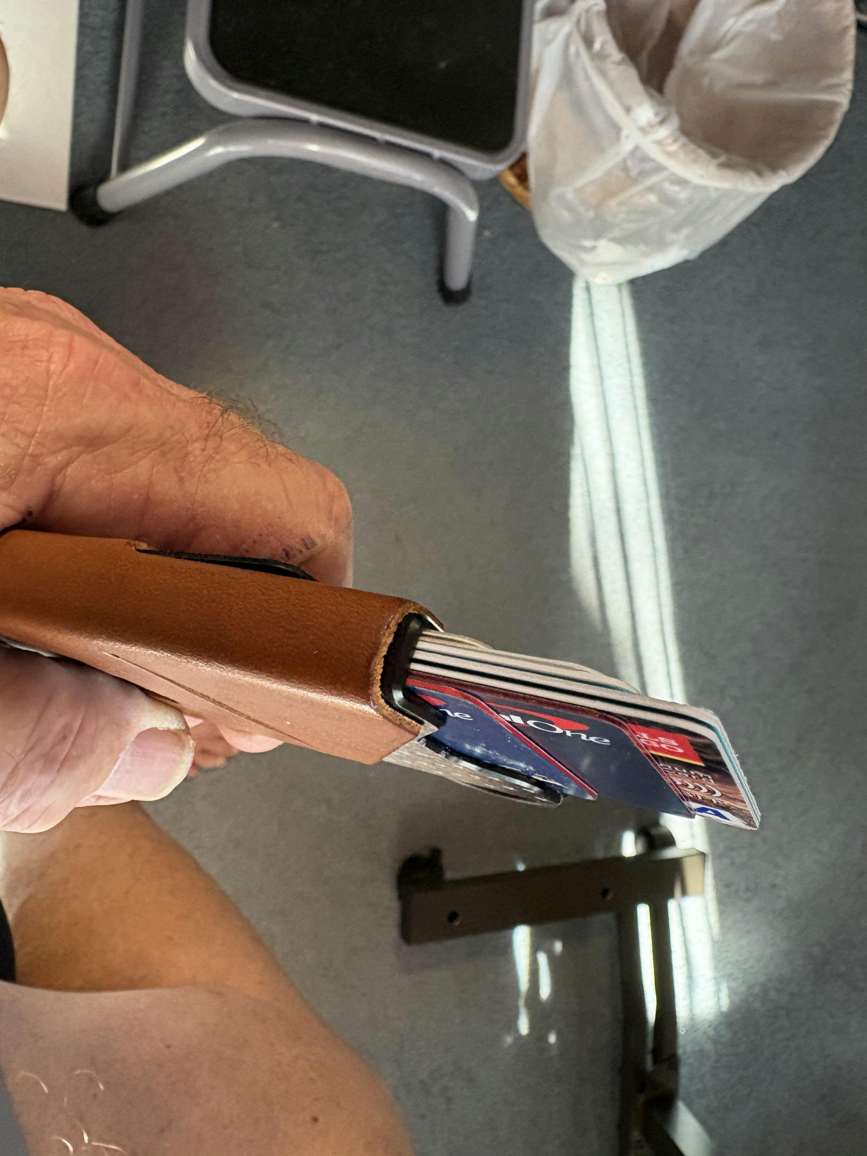 I almost sent it back because I don't like the way the cards are dispensed. Other flat types I've had presented them is a tiered way. This wallet is haphazard including holding my hand over in case one card decides to jump out.